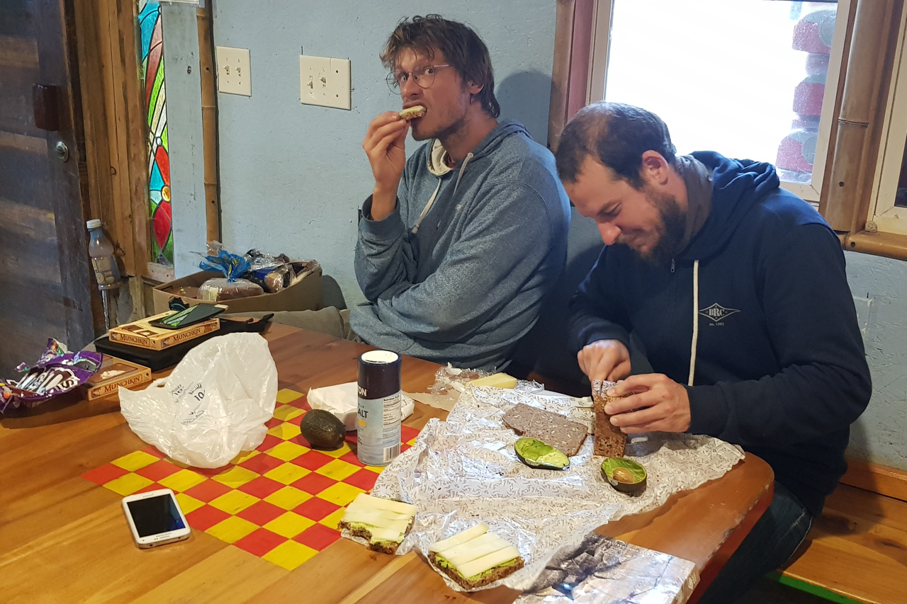 Bei vier Wochen auf demselben Campingplatz sollte dieser in der Beschreibung selbstverständlich nicht zu kurz kommen. Der Name „Miguel’s Pizza“ impliziert natürlich, dass es hier Pizza gibt – und die haben wir selbstredend auch mehrfach getestet. Zu den positivsten Ausstattungsmerkmalen gehört hier auf jeden Fall die klimatisierte „Zen Den“. Was eigentlich als Yoga-Raum gedacht ist eignet sich ganz ausgezeichnet zum Trocknen kondensations-geplagter Schlafsäcke. Weniger ausgereift ist die Situation der sanitären Anlagen. Bei zwei Toiletten sind hier am Morgen lange Wartezeiten bei mehreren hunderten Campern einzukalkulieren. Gespült wird hier übrigens etwas anders als zu Hause: Man stelle sich statt einem Wasserhahn eine Hochdruck-Gardena-Gartenbrause vor, mit der das Geschirr abgesprüht wird. Exotische Schwämme oder gar Geschirrspülmittel finden hier scheinbar keine Verwendung.