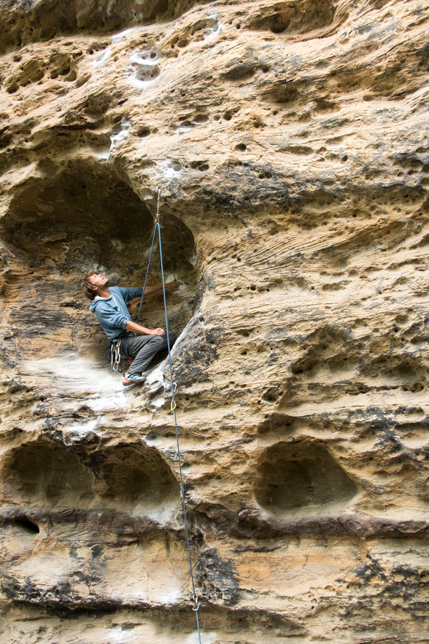 Natürlich gab es in der Red River Gorge nicht nur Unannehmlichkeiten. Unterm Strich hatten wir hier dennoch eine gute Zeit, an der zu einem großen Teil auch unser temporärer Mitstreiter Flo beteiligt war. Dieser hatte vorher seinen Leib in Griechenland auf Vordermann gebracht und uns danach für 3 Wochen in Kentucky besucht. Dessen hohe Motivation war für uns bestimmt auch noch mal zusätzlicher Antrieb, sich mit den teilweise nicht optimalen Bedingungen zu arrangieren und das Beste rauszuholen.