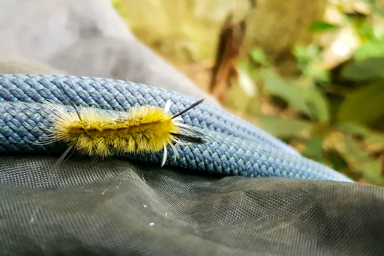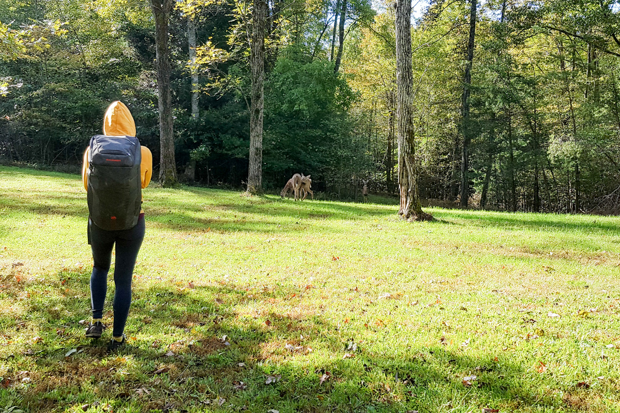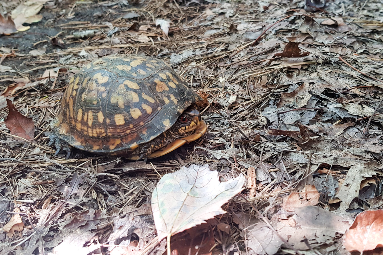 Die Tierwelt ist weniger spektakulär als im Westen – was eventuell auch an der Jahreszeit liegt. Ein Tier gab es allerdings in ganz besonders hoher Anzahl, zum Spaße aller sogar den lieben langen Tag lang: die immer gern gesehene Moskito-Fliege. Sogar während dem Klettern umschwirrten sie uns und taten sich gütlich. Spätestens mit dem Temperatursturz Mitte Oktober wurde dies allerdings besser. Auch alle Schlangen, die sich noch in den ersten Tagen vor uns weggeschlängelt haben, waren dann im Winterschlaf, und auch von den gruseligen Langustentieren, welche bei Dämmerung auf dem Campingplatz unterwegs waren, hat sich ab der zweiten Woche keines mehr blicken lassen. Interessant waren die verschiedenen Molcharten, denen wir begegnet sind. Auch eine letzte kleine Schildkröte ist uns begegnet, wahrscheinlich auf dem Weg zum Überwintern. Ansonsten gibt es natürlich unendlich viele Rehe und außerdem auch eine Vielzahl an Waschbären (von denen leider nur die Franzi ein lebendes Exemplar gesehen hat, als es unseren Abfall durchstöbert hat).