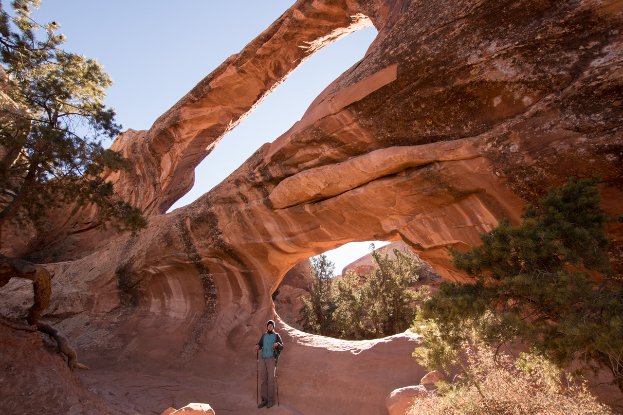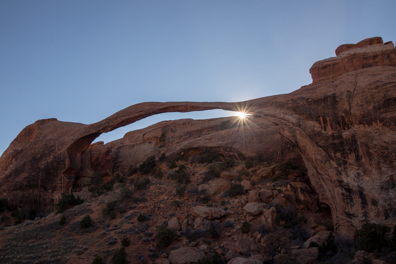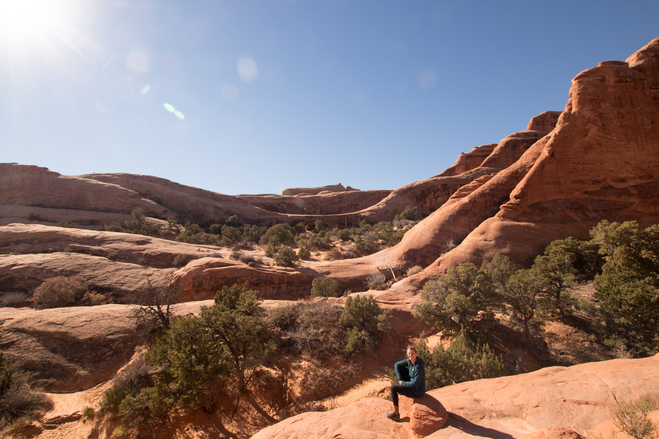 Wiederkehrende Leser unseres Blogs werden an dieser Stelle sofort aufschreien: ´Da wart ihr doch schonmal´ (bzw. der Dan und die Sanne). Gut aufgepasst! Aber im Unterschied zum letzten Mal haben sich Franzi und Dan dazu entschieden, dass Auto zu verlassen und die Besichtigung der Felsbögen anhand einer kleinen Wanderung vom so genannten `Devils Garden` aus vorzunehmen. Dabei sind wir unter anderem am ´Landscape Arch´ vorbeigekommen, welcher durch seine Breite (ca. 90m) zu beeindrucken weiß. Kleiner Fun-Fact zum Landscape Arch: Im Jahr 1991 soll es wohl einen größeren Felssturz gegeben haben, daher darf man mittlerweile nicht mehr bis unter den Felsbogen laufen.