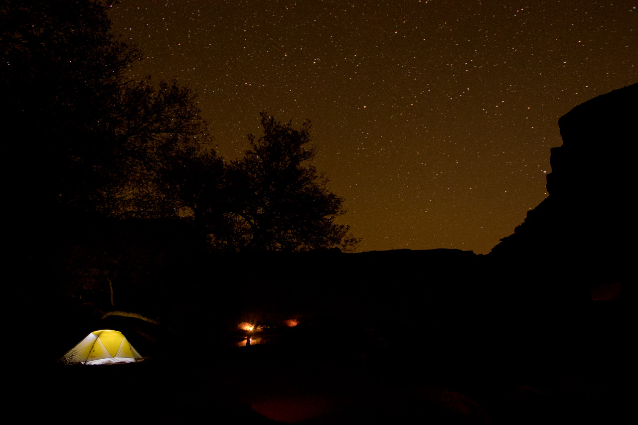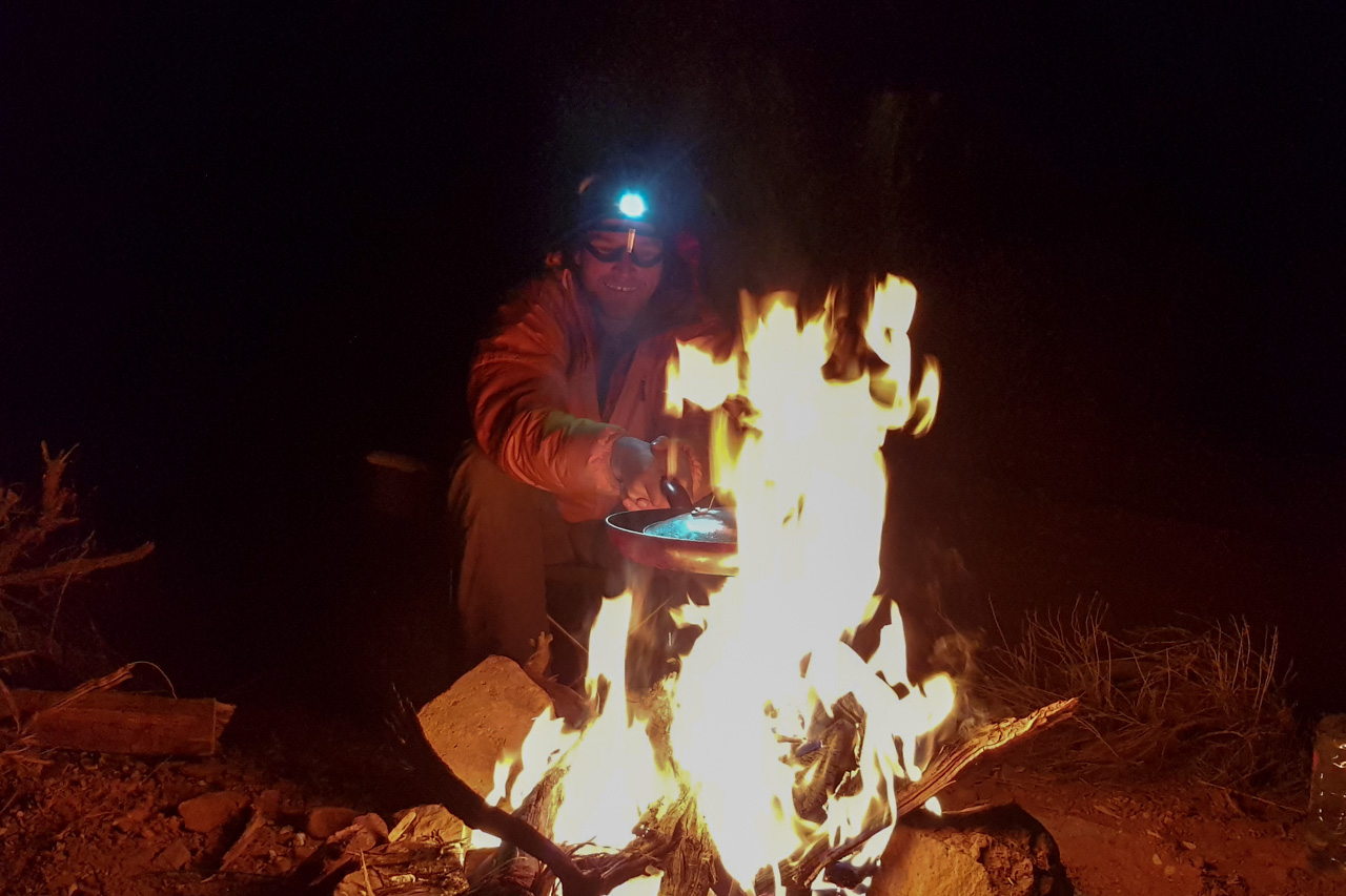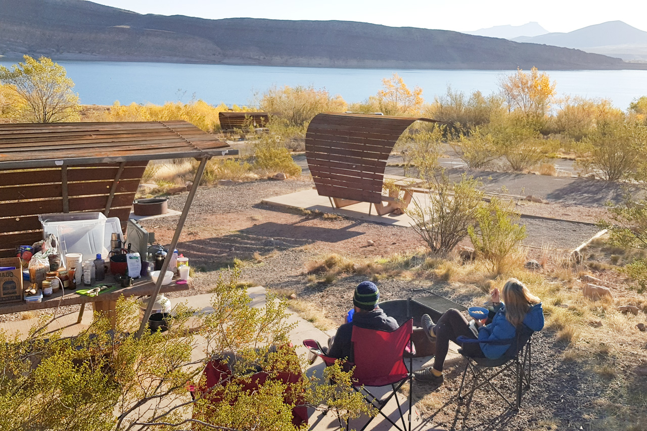 Von Moab sind wir dann Richtung Saint George aufgebrochen, da wir nachts gerne mal wieder Plusgrade haben wollten (inzwischen waren wir wieder ins Zelt gezogen). Der Weg dorthin führte uns durch den Dixie National Forest entlang des Scenic Highway 12. Unser „Ortskundiger“ (Piet) war mal wieder ziemlich erstaunt, als sich Stück für Stück die lückenhafte Erinnerung vervollständigt hat. Konkret hat das bedeutet, dass wir uns auf einer Passstraße befanden, welche uns, vorbei an zugefrorenen Bächen, auf fast 2900m hoch geführt hat. Dort haben wir dann an einem sehr schönen im Wald gelegenen, aber leider auch sehr kalten, Zeltplatz übernachtet. Hier war dann ein Lagerfeuer absolute Pflicht.