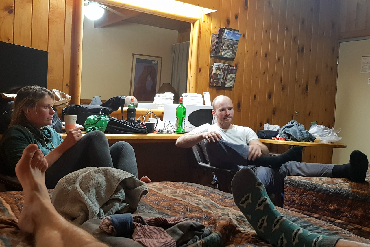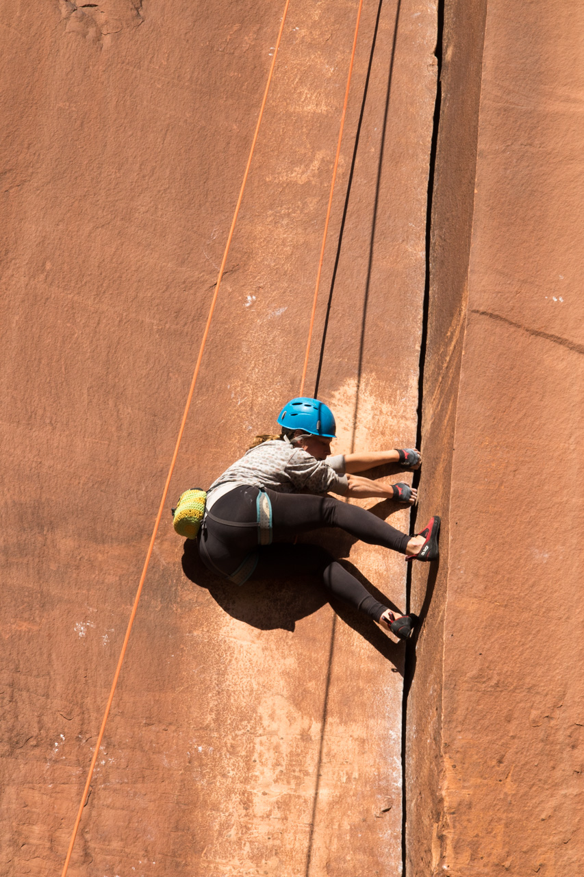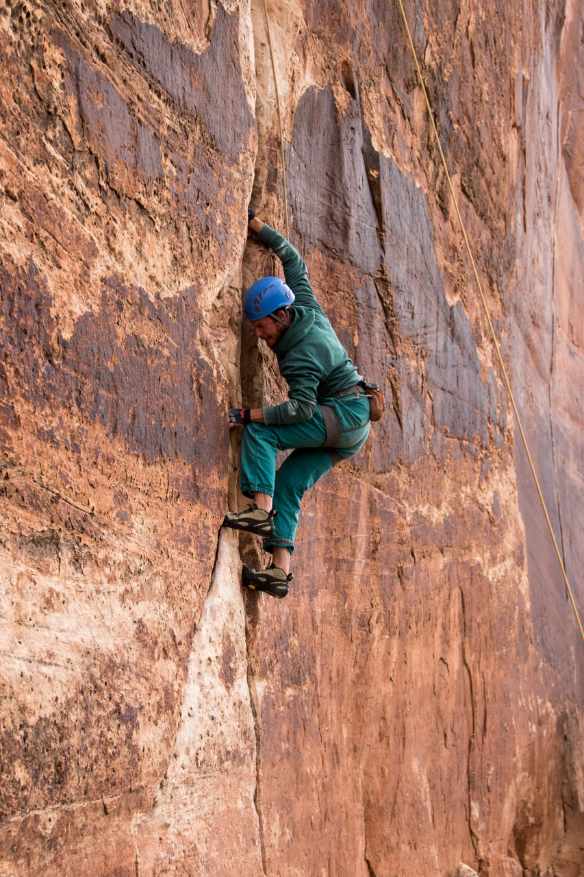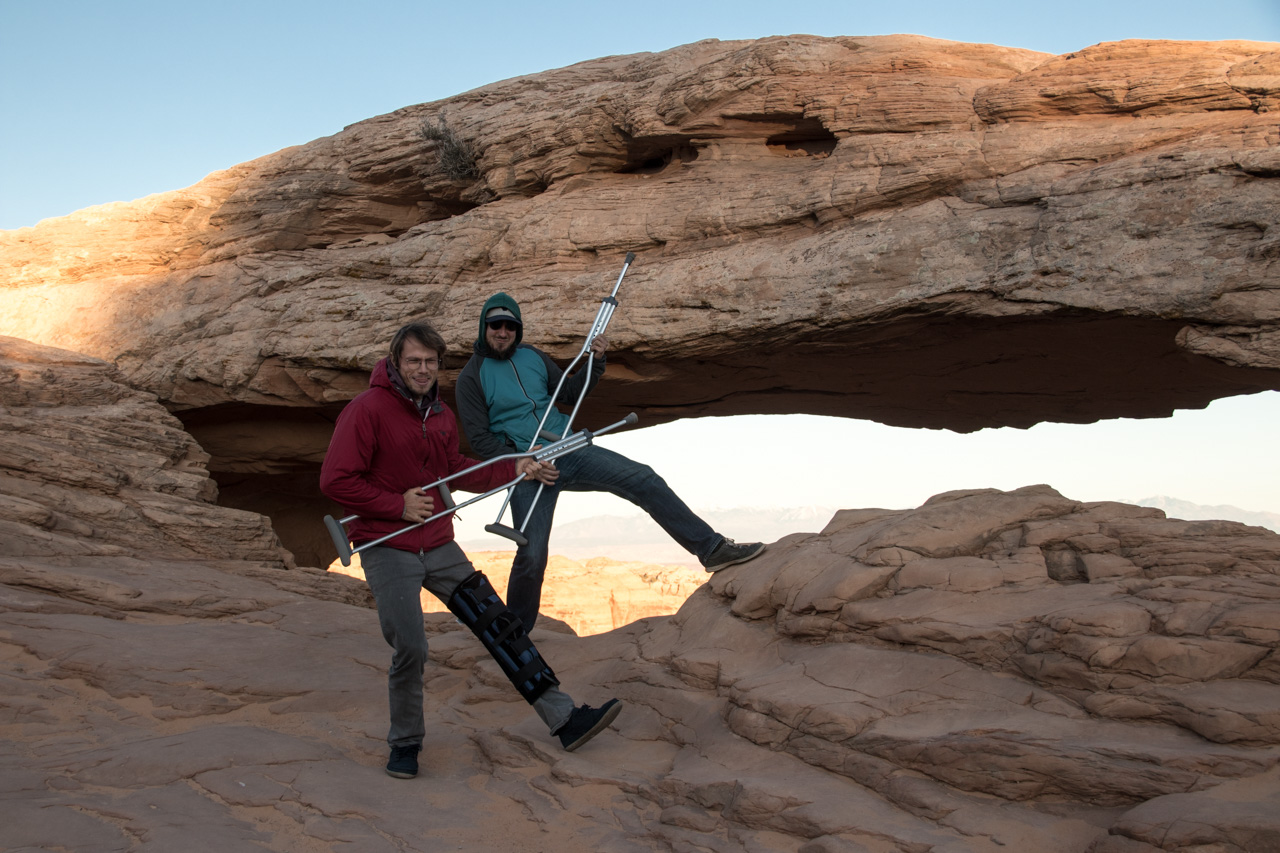 Leider wurde es dann etwas kälter als gehofft, aber so war es dann auch leichter zu rechtfertigen, dass wir uns alle zusammen zurück in Moab ein Motelzimmer mit heißer Dusche und Hot Tub leisten sollten. Auch hier gab es noch etwas von unseren amerikanischen Freunden zu lernen. Denn selbst in einem bereits vollem Hot Tub bekommt man mit der Ansage „He is a friend from Germany who has ruined his knee“ noch Premiumplätze für 6 Leute mit (teilweise) ausgestreckten Beinen. Am nächsten Tag haben wir nochmal in der Nähe von Moab ein paar weitere Risse besichtigt.