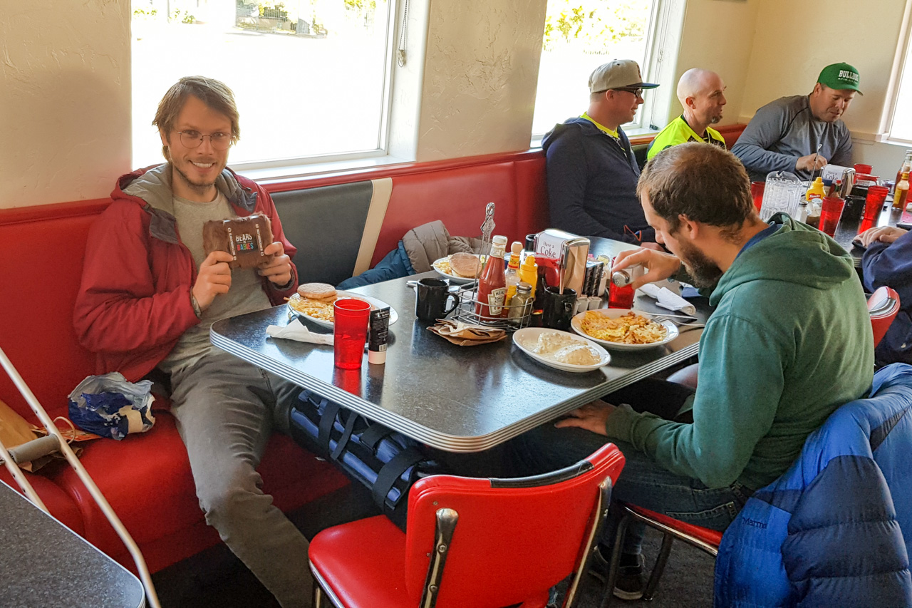 An Piets Geburtstag ging es vormittags erstmal zu einem Diner zum Frühstück. Nachdem wir unsere Hashbrowns, Pancakes und diverse andere „gesunde“ Kost vertilgt hatten, sind wir noch in den Canyonlands Nationalpark gefahren. Neben dem Bestaunen der zerklüfteten Landschaften, haben wir hier außerdem einen neuen Weltrekord im schnell Kochen & Abspülen aufgestellt, da es einfach saukalt und auch relativ windig war. Danach gings dann schnell ins warme Motel zurück.