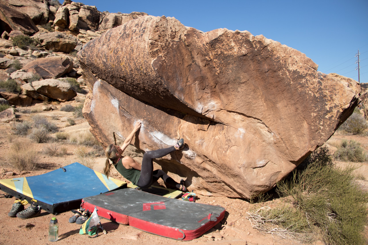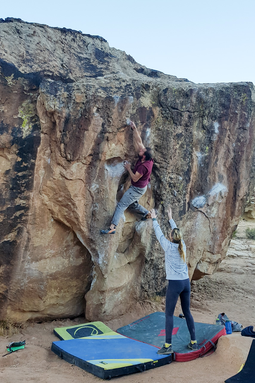 Angekommen in Saint George sind wir dann auch drei Tage im Moe’s Valley bouldern gewesen. Dort bouldert man an besten Sandsteinfelsen mitten in der Wüste. Ein Sektor nennt sich im Übrigen Super Mario Land, dessen Felsen wie riesige Pilze aussehen.