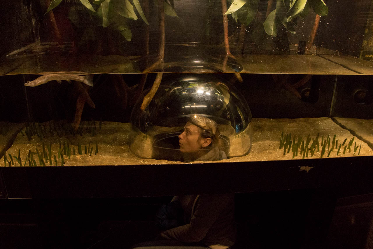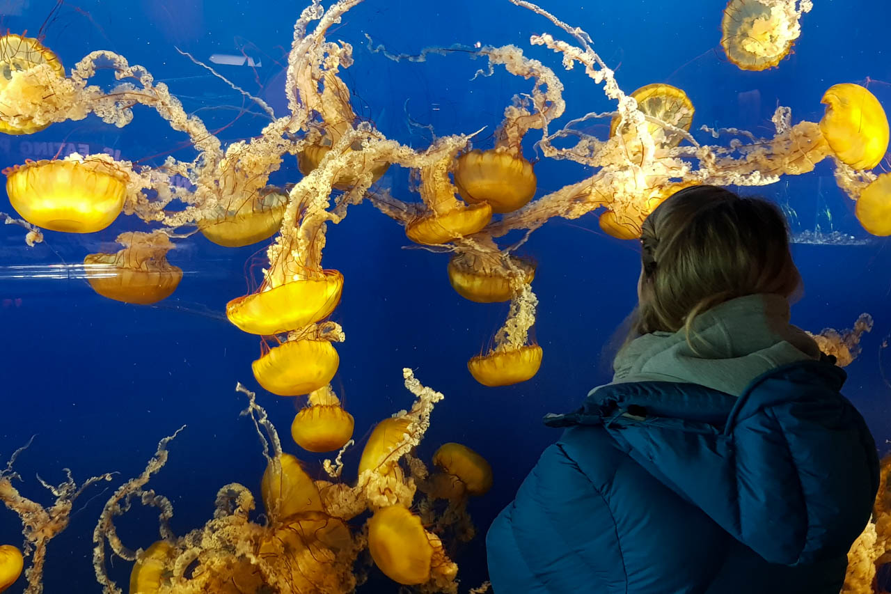 An einem der verschneiten Tage – es hat teilweise gar nicht mehr aufgehört – sind wir ins Aquarium gegangen und haben dort neben Quallen, Nemo’s und einer riesigen Meeresschildkröte auch den Außenbereich erkundet: Dort wohnen aufgefangene Tiere, die nicht mehr in der Wildnis überleben können, wie ein Delfin mit nur noch einer richtigen Floße, die andere hat er in einem Fischernetz verloren, oder ein Walroß welches tragischerweise wegen zwei Gewehrkugeln im Kopf erblindet ist. Am besten haben uns die Fischotter gefallen, die ihr Futter als Eisblock erhalten haben und damit rückwärts im Wasser getrieben sind. Den südafrikanischen Pinguinen wars im Schnee zu kalt – aber die haben wir ja schon live vor Ort sehen können.