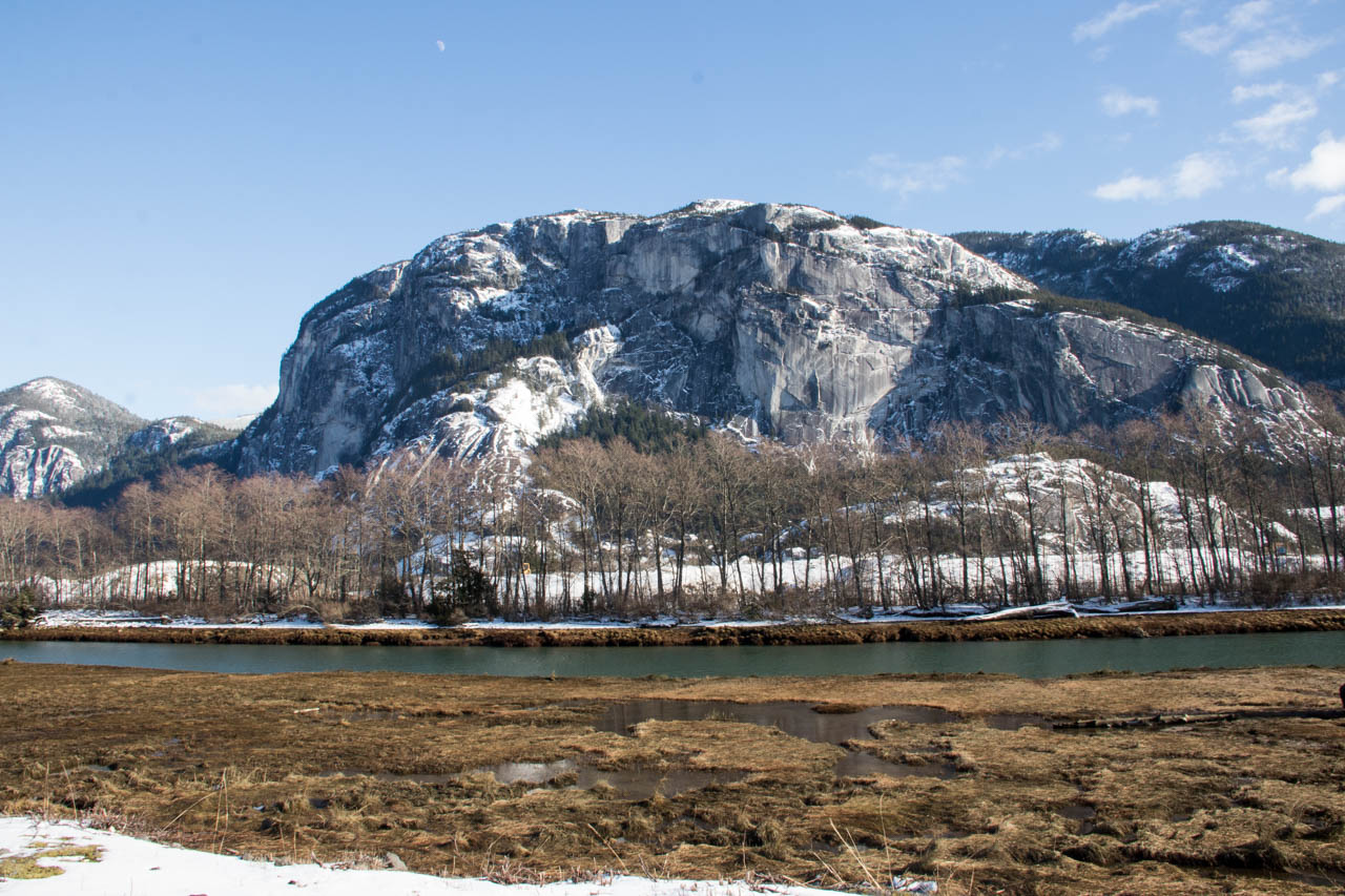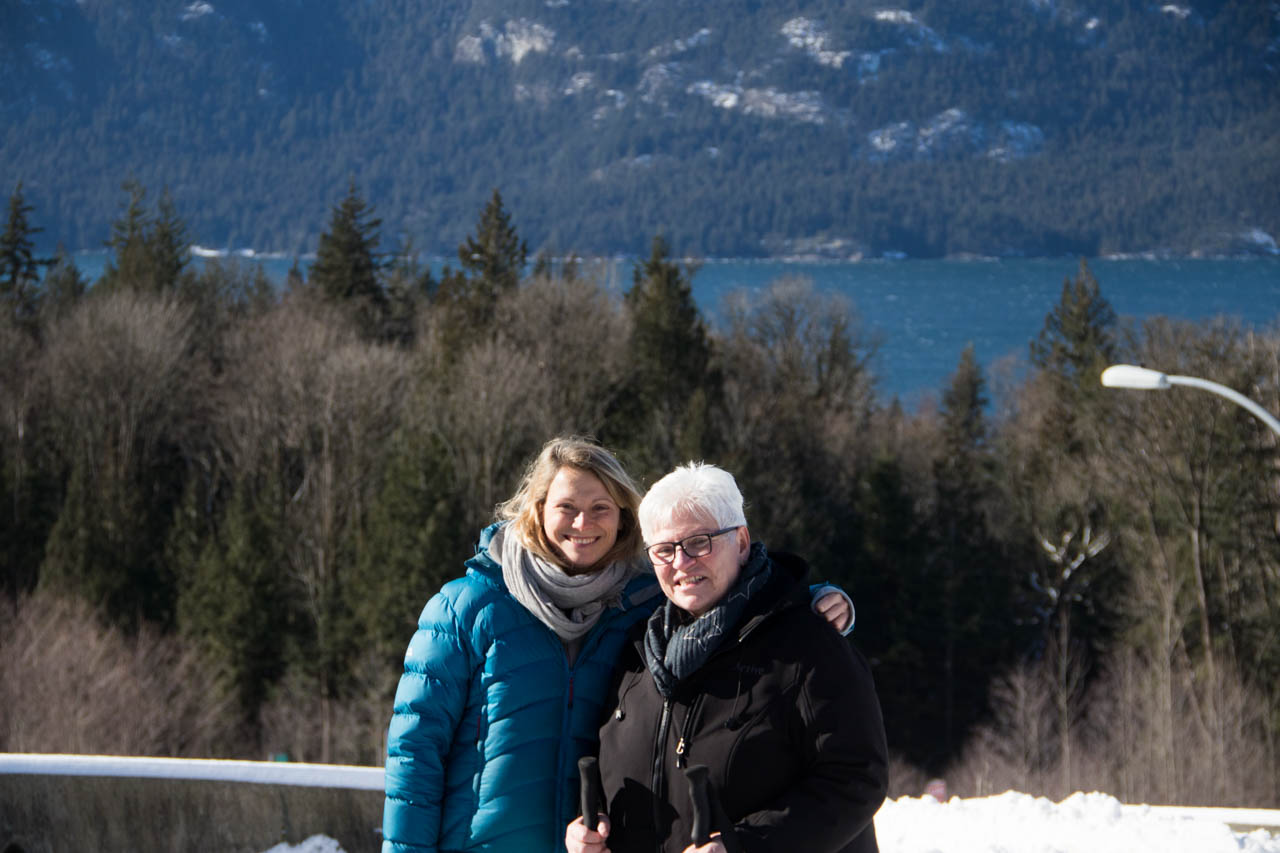 Am nächstmöglichen Tag, an dem Frau Holle sich ausruhen musste und die Sonne munter versucht hat, den Schnee wegzuschmelzen, sind wir alle mit Sir Henry die Küste entlang nach Squamish gefahren und haben die Aussichten über das Meer, Inseln sowie die Blicke in die verschneiten Berge genossen. Bei Squamish haben wir den Stawasmus-Chief bewundert, den zweitgrößte Granitmonolithen der Welt, der uns einen Vorgeschmack auf den Sommer gegeben hat – wenn alles klappt, kehren wir wieder zum Klettern hierher zurück!
