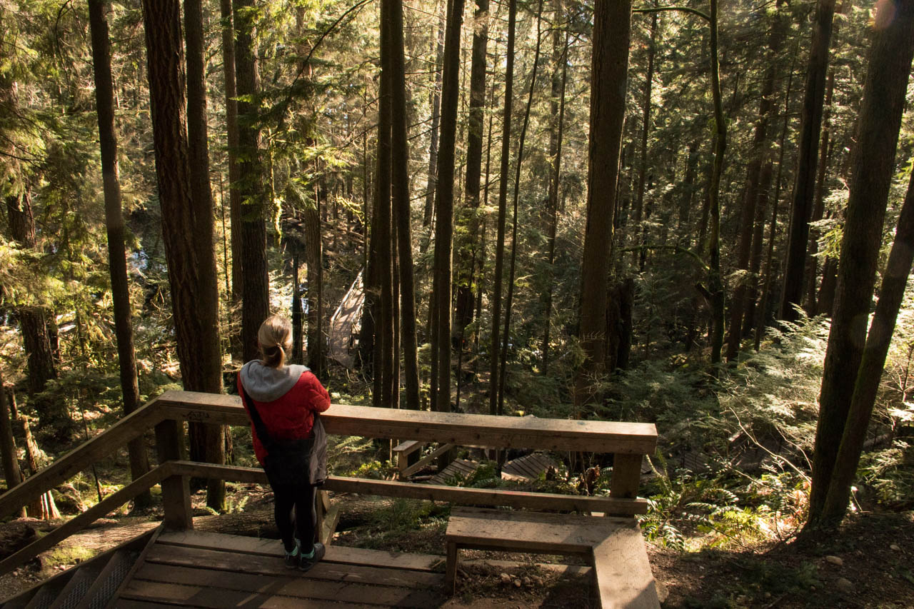 Die Zeit nach dem Besuch von Franzi’s Mama und Bruder wurden mit mehreren Wanderungen von unserer Wohnung aus in die angrenzenden Berge gefüllt, zum Schluss sogar ganz hoch auf den Hausberg von Vancouver, den Grouse Mountain (850 Höhenmeter auf 3 Kilometern – Knie heil!). Außerdem haben wir an einem der Schlechtwettertage das etwas tropische Bloedel Conservatory besucht und versucht, die dort ansässigen Papageien zum Reden zu bringen. Ebenso etwas anders, aber interessant war das Zuhören der Vancouver Cantata Singers, die hauptsächlich mit ihren Stimmen verschiedene Melodien zum Thema „Musik des Universums“ gesungen haben.