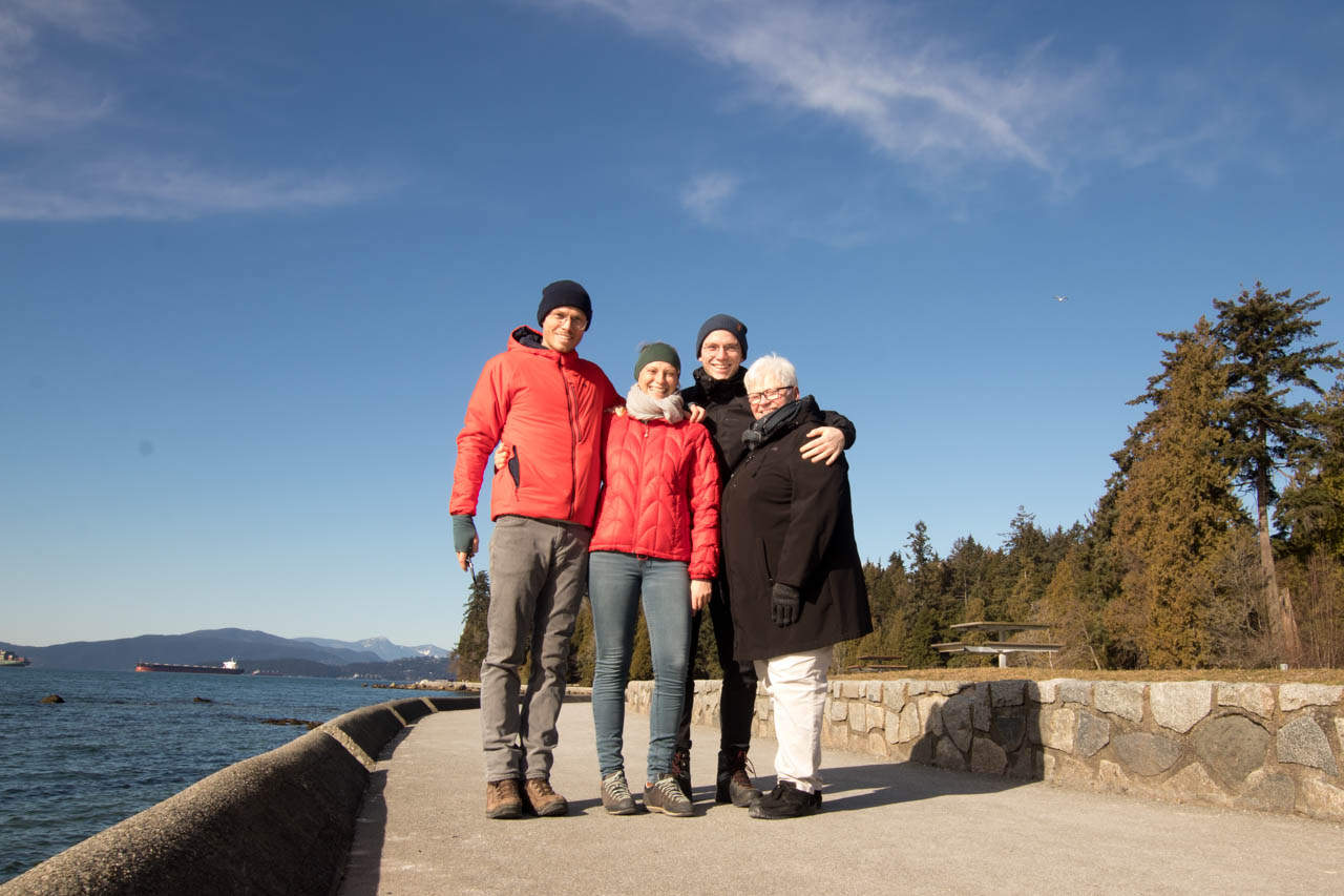 Die wehnertsche Familienvereinigung hat am ersten Tag mit viel Sonnenschein begonnen, den wir genutzt haben, um im Stanley Park, dem Stadtpark Vancouvers, am Meer zu spazieren und Bäume bis zu 70 Meter Höhe sowie eine der längsten Hängebrücken der Welt im Capilano Suspension Park zu bewundern. Neben dem Aufholen der letzten Monate haben wir auf diese Besuchertage den Touri-Schwerpunkt unseres Vancouver-Aufenthaltes gelegt, der nur durch plötzlichen vielen Schnee etwas herausfordernder war als ursprünglich geplant. Gemeinsam mit Christa und Christopher haben wir in das chinesische neue Jahr des Schweins reingefeiert – bei Eiseskälte und zum Schluss wieder mit viel Schnee. Die tanzenden Drachen waren vielleicht auch wegen dem Wetter nicht ganz so aktiv wie wir gehofft hatten. Dafür haben wir uns als Entschädigung leckere Doughnut’s zum erneuten Jahresanfang gegönnt.