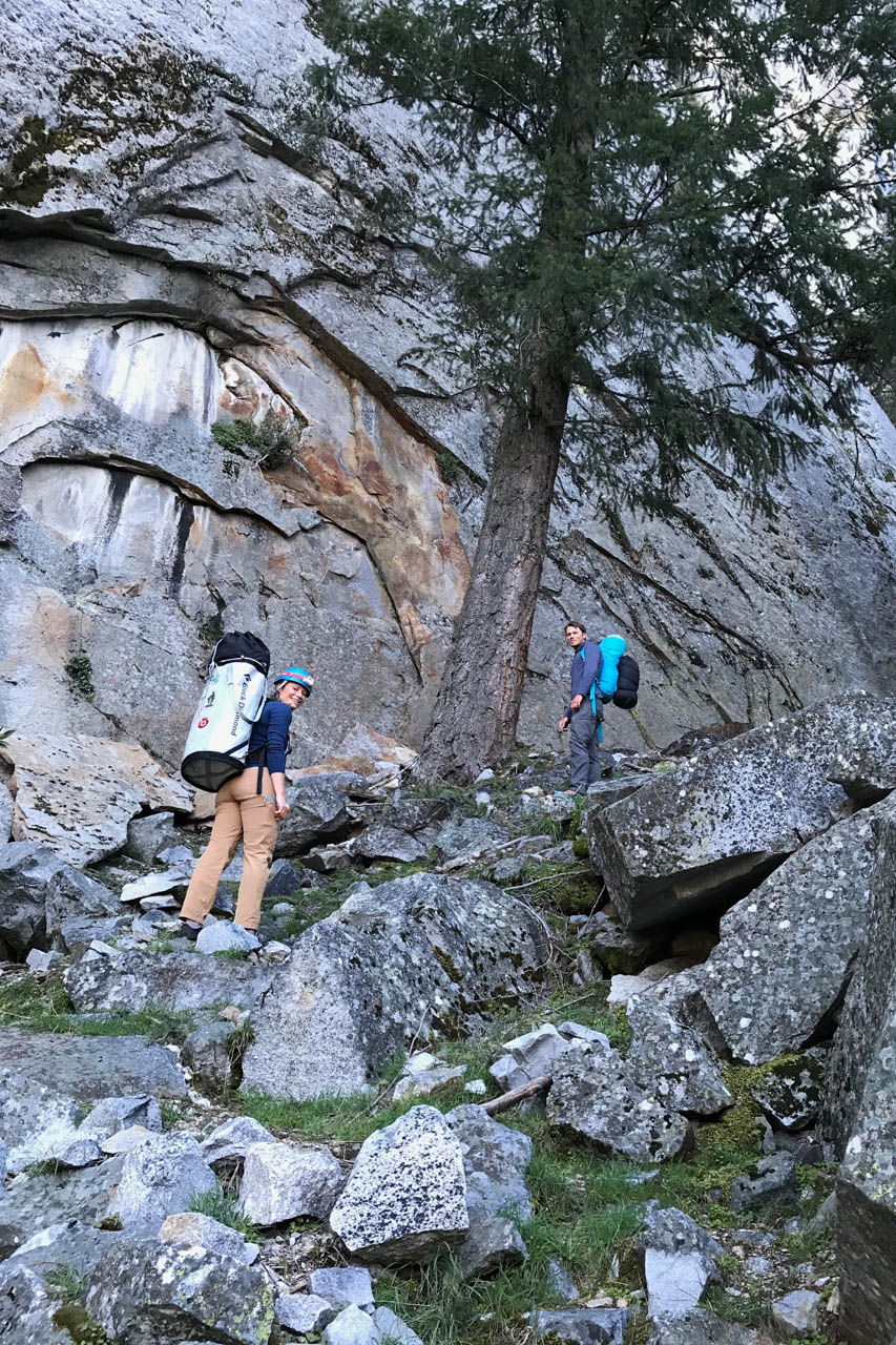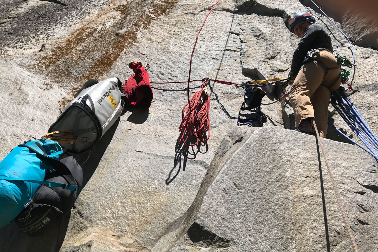 Fast forward – inzwischen sind einige Tage vergangen und wir haben uns von den Strapazen wieder einigermaßen erholt. Robert verglich das Big Wall Klettern mit dem Straßenbau und wir stimmen zu. Gefühlt ist man wirklich den ganzen Tag am Arbeiten. So ganz im Klaren, wie wir mit dieser Kletterdisziplin weitermachen, wissen wir noch nicht – aber dafür müssen wir ja nur abwarten. Robert hat sich inzwischen auf den Heimweg gemacht, hat uns aber seine Gerätschaften zum Nachholen des Haulbags sowie das dafür benötigte Statikseil hiergelassen. Wer weiß was er sich dabei gedacht hat...