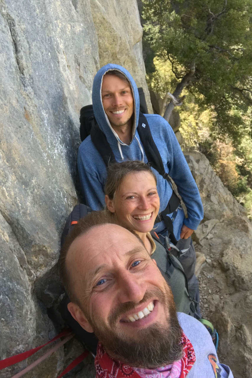 Robert war alleine im Valley und wollte sich zu diesem Zeitpunkt ebenfalls an den Fels gewöhnen. Neben diesem hatte er aber auch noch ambitioniertere Ziele – er wollte nämlich eine der Big Wall Touren klettern (Big Wall heißt, dass man üblicherweise mindestens einmal in der Wand übernachten muss, um ganz hoch zu kommen). Gerne würde er auch eine Big Wall wiederholen, die er schon gemacht hatte, denn einige davon kann er schon auf seinem Konto verbuchen. Zum Beispiel die Westseite des „Leaning Tower“. Er hatte zufällig auch schon mal eines der benötigten Seile zum Wandfuß hochgeschleppt und dort deponiert. Und auch alle Steinmännchen auf dem Pfad zur Wand wiederaufgebaut. Klingt alles ganz verdächtig konkret… Auf jeden Fall bot er uns an, dass wir eben jene Tour ja auch zusammen klettern könnten, denn Big Wall klettern lernt man am Besten in der „Big Wall“. Ob es wirklich diese Route sein musste war uns nicht so klar, denn offenbar ist die Wand von unten bis oben überhängend, was bedeutet, dass man im Seil sitzend von der Wand wegpendelt und dann jede Menge Luft unter dem Hintern hat.