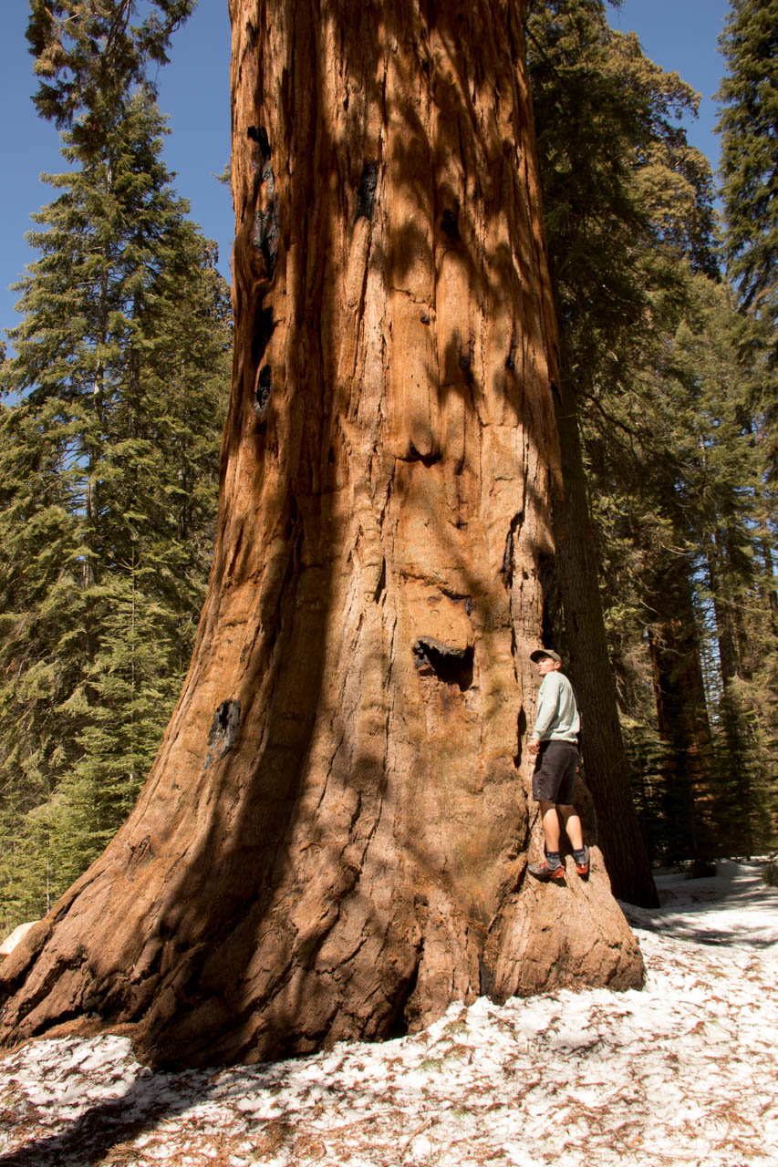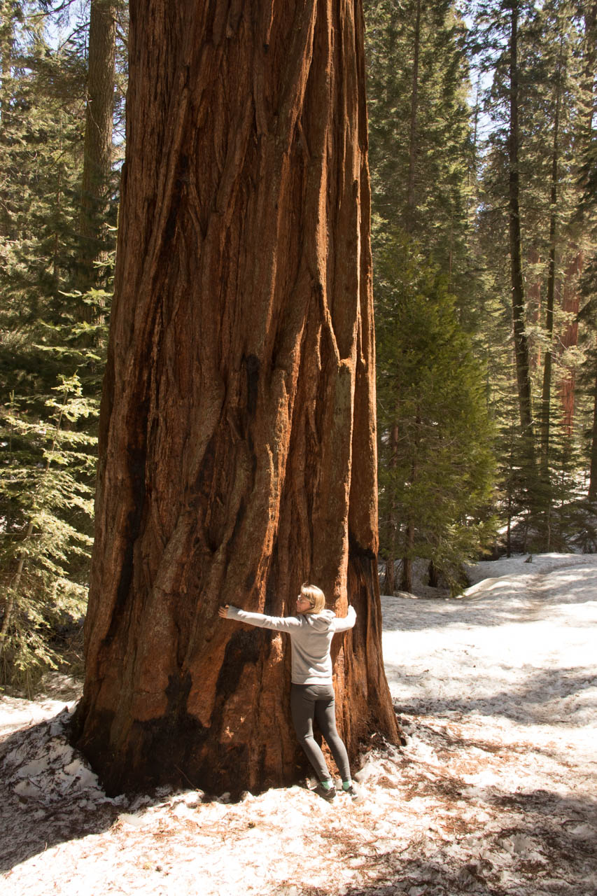 Nachdem wir in Indian Creek erste Erfahrungen im Rissklettern gesammelt hatten, wollten wir diese nun an größeren Wänden und längeren Touren auf die Probe stellen, nämlich im Yosemite Valley. Um dort hinzugelangen mussten wir aber erst einige Fahrstunden zurücklegen, bzw. sogar noch ein paar Zusätzliche, da um diese Jahreszeit die Pässe über die High Sierra noch unter Unmengen von Schnee begraben liegen. Die an sich acht-stündige Tour haben wir dann sogar noch um einen weiteren Umweg erweitert, um uns unterwegs den Sequioa National Park anzusehen. Letzten Herbst haben wir dort schon einmal vorbeigeschaut, wurden aber damals vom dortigen Regen und der Schneekettenpflicht wieder verscheucht. Inzwischen ist hier aber der Frühling angekommen und hat die Straßen freigeschmolzen, bzw. zumindest nicht die Räumarbeiten behindert.