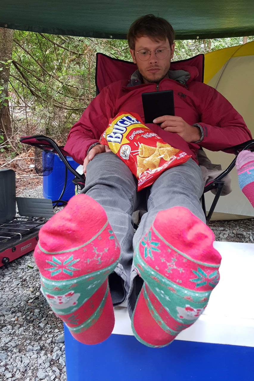 Die ersten Tage waren, wie auch sonst im Nordwesten der USA, stark geprägt von Regen – ein super Anlass unser gegenseitiges ‚Ostergeschenk’ einzulösen: ein paar Nächte in einer Unterkunft mit Sofa, Backofen und Wifi, um die neueste Staffel von Game of Thrones nachzuholen. Mit einem festen Dach über dem Kopf konnten wir auch gleich wesentlich entspannter die Trockenperioden zu Kletterversuchen nutzen – denn wir konnten ja danach auch alles problemlos zum Trocknen aufhängen und warm Duschen!