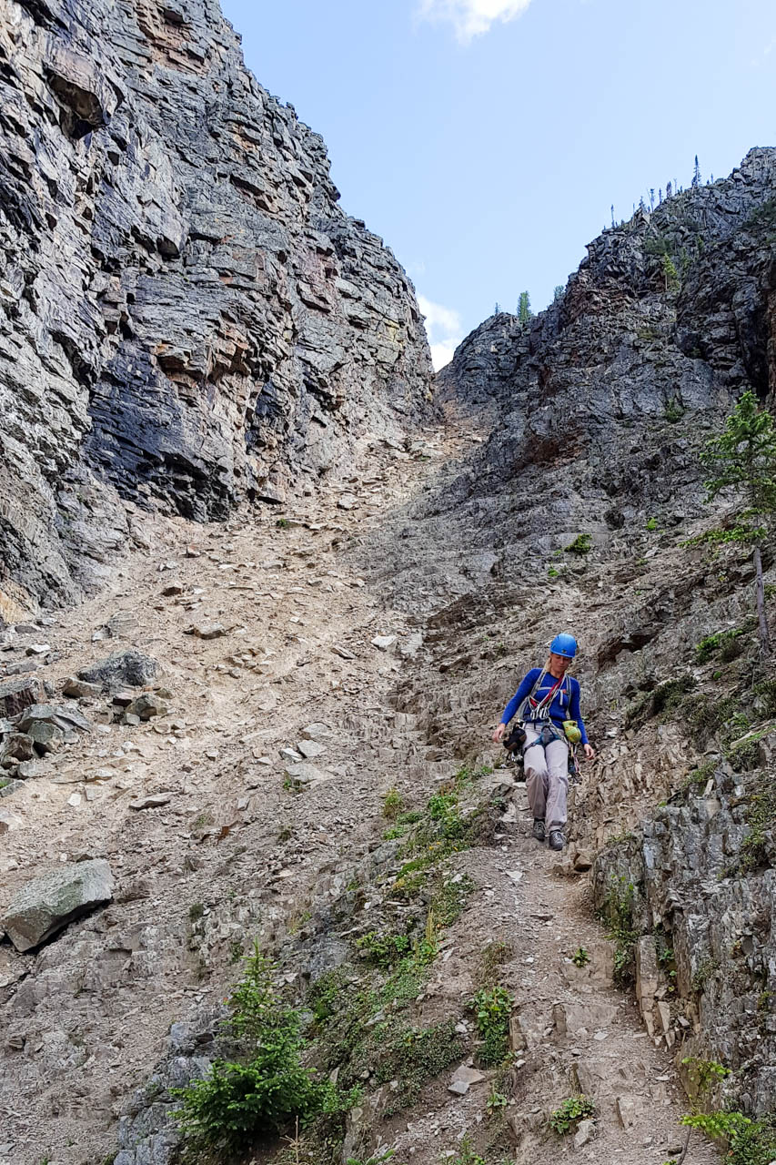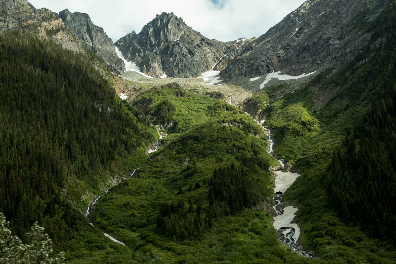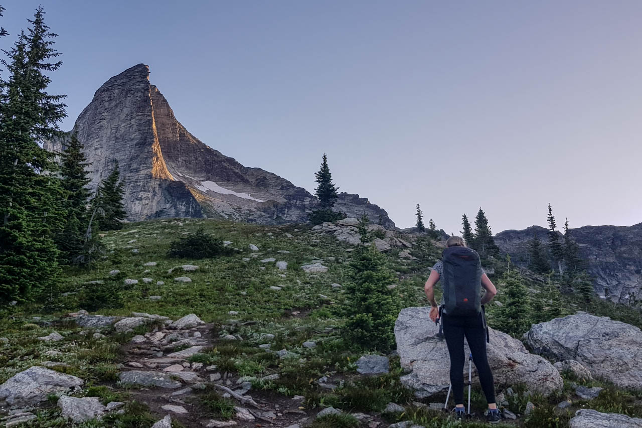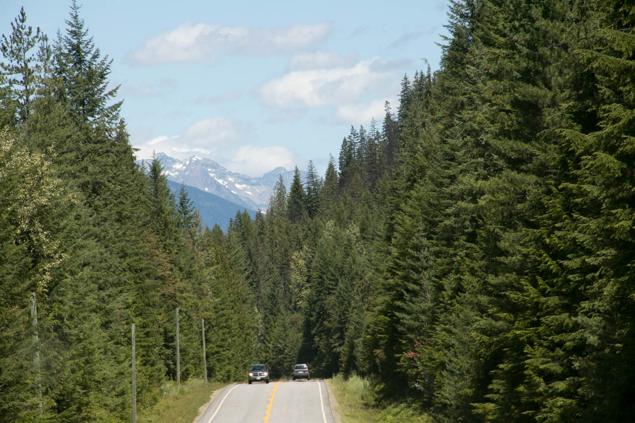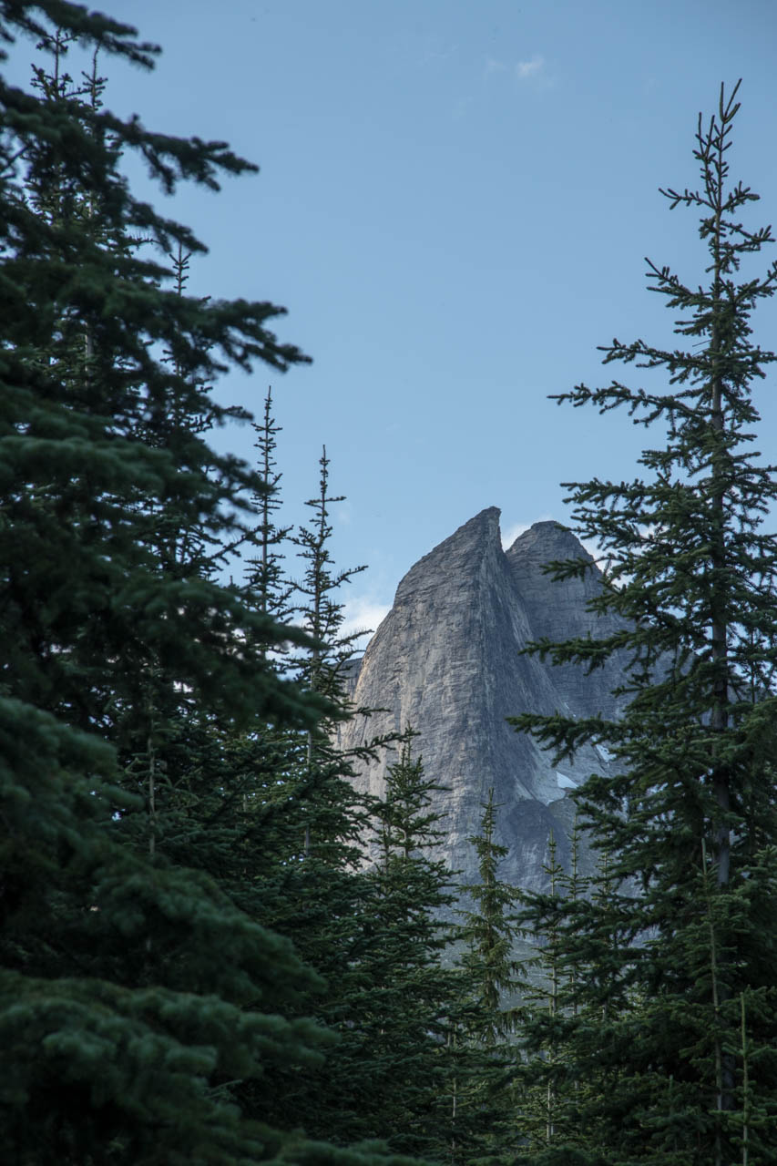 In den Valhallas hatten wir uns eine anspruchsvolle Tour ausgesucht, die wir versuchen wollten, den Südgrat des Mount Gimli. Mount Gimli ist circa 2770 Meter hoch und über einen fast 5 Kilometer langen steilen Wanderweg erreichbar, bevor man dann in eine 7 Seillängentour zum Gipfel einsteigt. Davor musste sich unser Sir Henry allerdings eine ziemlich intensive 24 Kilometer lange „Dirt Road“ hocharbeiten. Für uns wurde es dann ab dem Zeitpunkt spannend ab dem wir uns ins Zelt verkrümelt hatten, denn um uns herum wimmelte es von „Rodents“ (=Nager, inkl. Marder) denen wir Schabernack mit unserem Auto zutrauten und vor allem auch Grizzlies – dafür hatten wir uns aber dank beeindruckenden Geschichten mit Bärenspray ausgerüstet.