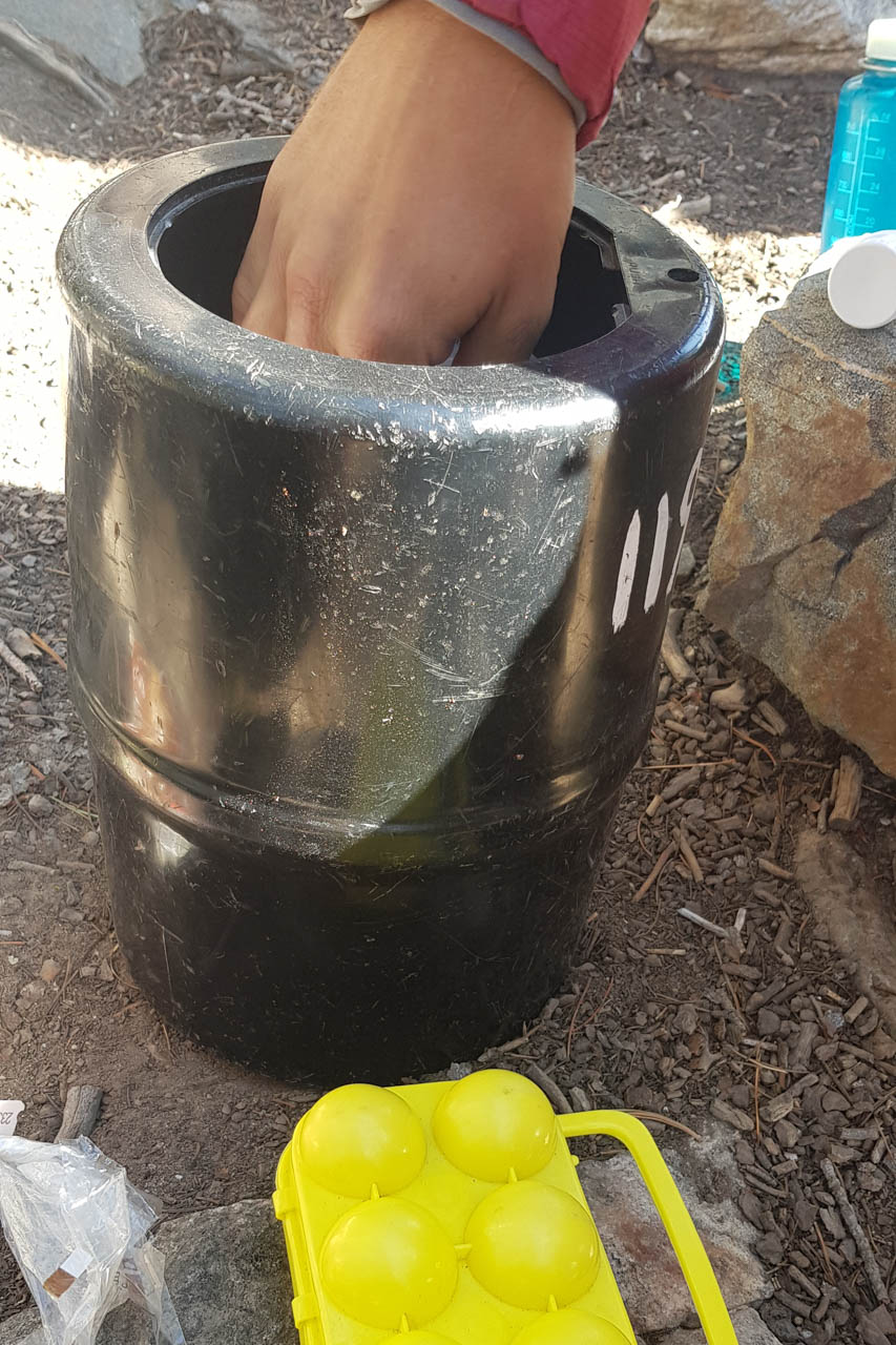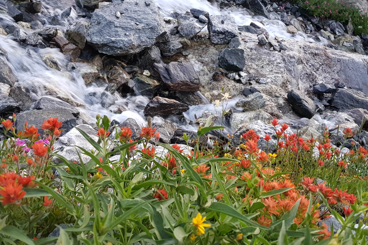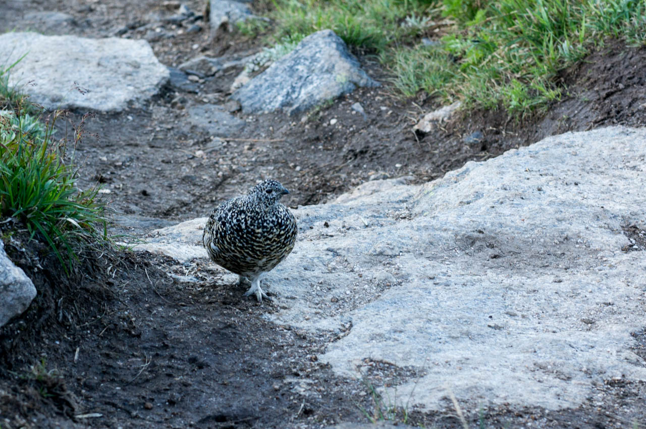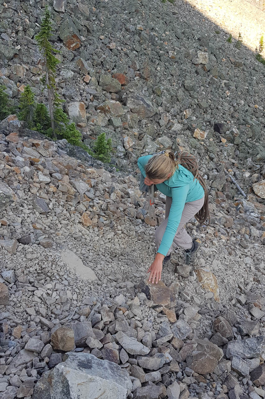 Pünktlich um 4.00 Uhr morgens klingelte dann der Wecker und es ging los. Dauerhaft begleitet von einem Mückenschwarm sind wir 2 Stunden lang den Berg hochgestapft, um über der Baumgrenze tatsächlich die Tiere zu finden, die wir unbedingt sehen wollten: Mountain Goats. Diese haben sich dauerhaft um den Mount Gimli herum angesiedelt, verlieren gerade ihr Winterfell, haben sogar Nachwuchs präsentiert und sind schauerlich gierig nach den Salzen im menschlichen Urin – weswegen es dort in luftiger Höhe ein Plumpsklo und sogar ein freistehendes Urinal gibt, damit die Mountain Goats nur für sie natürliche Salzquellen anzapfen. Zusätzlich gab es auch ziemlich runde und neugierige Murmeltiere, die auch gerne am Kletterzeug und den Rucksäcken genagt haben – wahrscheinlich auch, um das Salz aus unserem Schweiß zurück zu gewinnen.