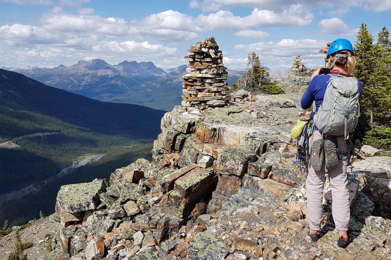 Also auf in den Shuttlebus, dann zum Moraine Lake und ein wunderbar loses Schuttfeld hoch zum Einstieg vom Tower of Babel. Das Gestein, indem wir klettern waren, war ebenfalls relativ brüchig und lose (Nordwestwand) und auch die Wegfindung war nicht immer leicht, aber Stück für Stück haben wir uns die 9 Seillängen nach oben gearbeitet, um letztendlich bei einem imposanten Steinmann auf dem Gipfel rauszukommen. Leider merkten wir hier schon, dass es mit dem letzten Shuttlebus knapp werden könnte, wollten aber beim steilen Schuttabstieg durch die Abstiegsrinne nicht zu sehr hetzen, damit wir mit heilen Knien unten ankommen. Natürlich haben wir den letzten Bus um 10 Minuten verpasst. Aber diesen Tiefpunkt haben wir ziemlich schnell überstanden, denn für genau solche Kandidaten wie uns gab es um 17.00 Uhr noch einen weiteren Bus, der all die verlorenen Schafe aufsammelte. Also sind wir gut beim Sir Henry angekommen und haben diesmal Abends wieder auf eine erfolgreiche Tour anstoßen können. Zudem haben wir auf dem Rückweg zum Zelt einen Grizzlybären am Horizont über Bahngleise galoppieren sehen (der war ganz schön groß) und zwei Schwarzbären, die am Straßenrand im Gebüsch rumschnufften und in der Erde buddelten. Toll!