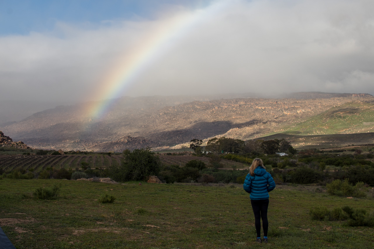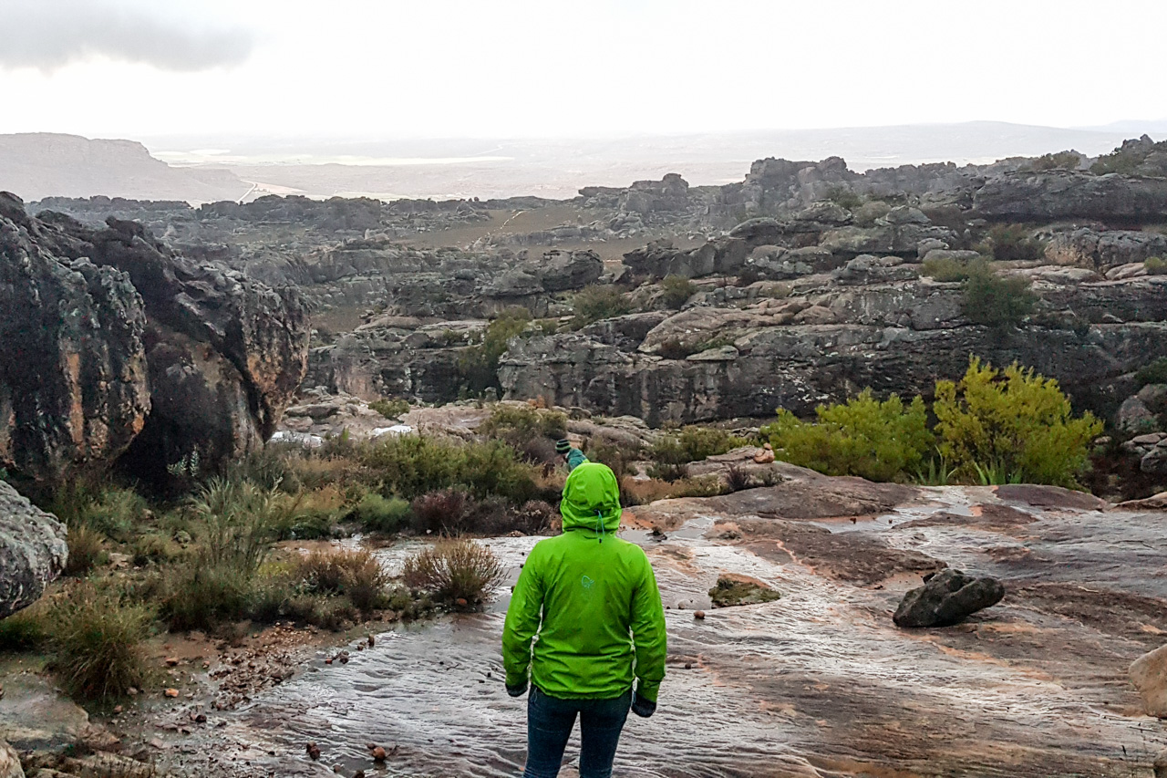 Der De Pakhuys Campingplatz liegt auf der Ostseite des Pakhuis-Pass in den Zederbergen. Unter Kletterern ist dieser Fleck in Südafrika unter dem Namen Rocklands bekannt, und das zu Recht: Sobald man Clanwilliam verlässt fährt man durch endlose Blockfelder bzw. vorbei an unzählbar vielen Felstürmen und Blöcken.