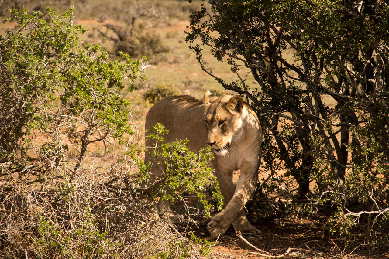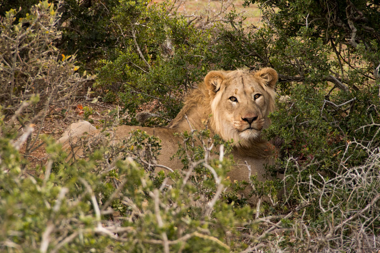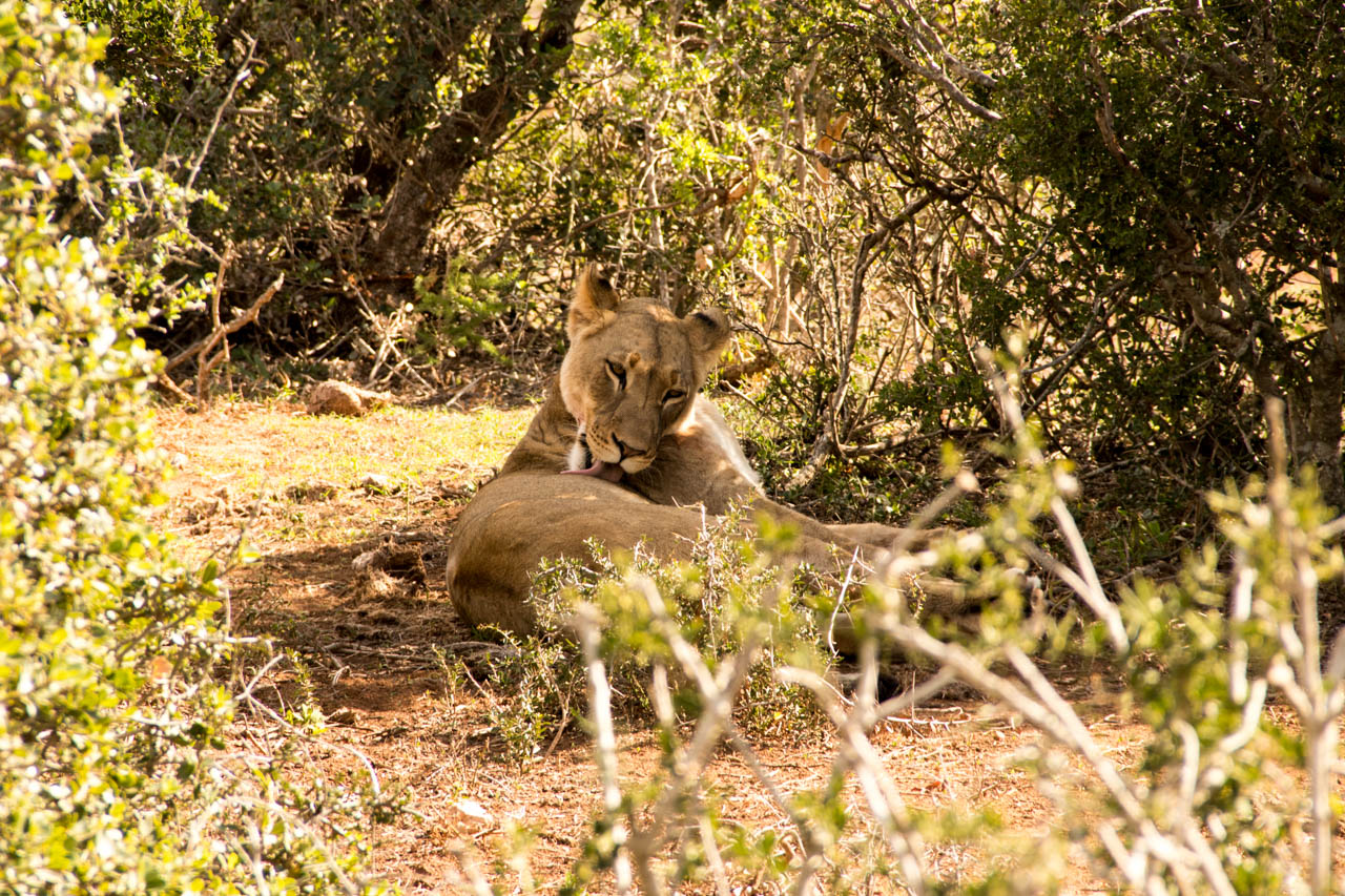 Von Mossel Bay aus ging es weiter entlang der Garden Route mit immer wieder spektakulären Aussichten über Seen und Wälder im Norden und rollende Wellen im Süden bis zu unserem ersten richtigen Ziel, dem Addo Elephant National Park. Hier wurde es gleich etwas spannender, da wir bei Einfahrt in den Nationalpark mitgeteilt bekommen haben, dass wir ohne Stopps und Umwege auf direktem Weg ins Camp fahren müssen, da wir zeitlich knapp dran sind und das Tor am Camp um Punkt 18 Uhr schließt! Natürlich haben sich aber gleich auch ein paar Tiere präsentiert und wir konnten nicht ohne anzuhalten und Fotos zu machen einfach weiterfahren… um 17:57 Uhr sind wir durchs Camptor gerollt (was auch gut war, da wir auf Nachfrage erfahren haben, dass bei Ankunft nach 18 Uhr eine Strafe von 1.000 ZAR persönlich bei der Polizei vor Ort zu zahlen sei). Den nächsten Tag haben wir mit einer Safaritour noch vor Sonnenaufgang gestartet und sind dann auf eigene Faust losgefahren, um unser Tagesziel zu verwirklichen: Löwen sehen!