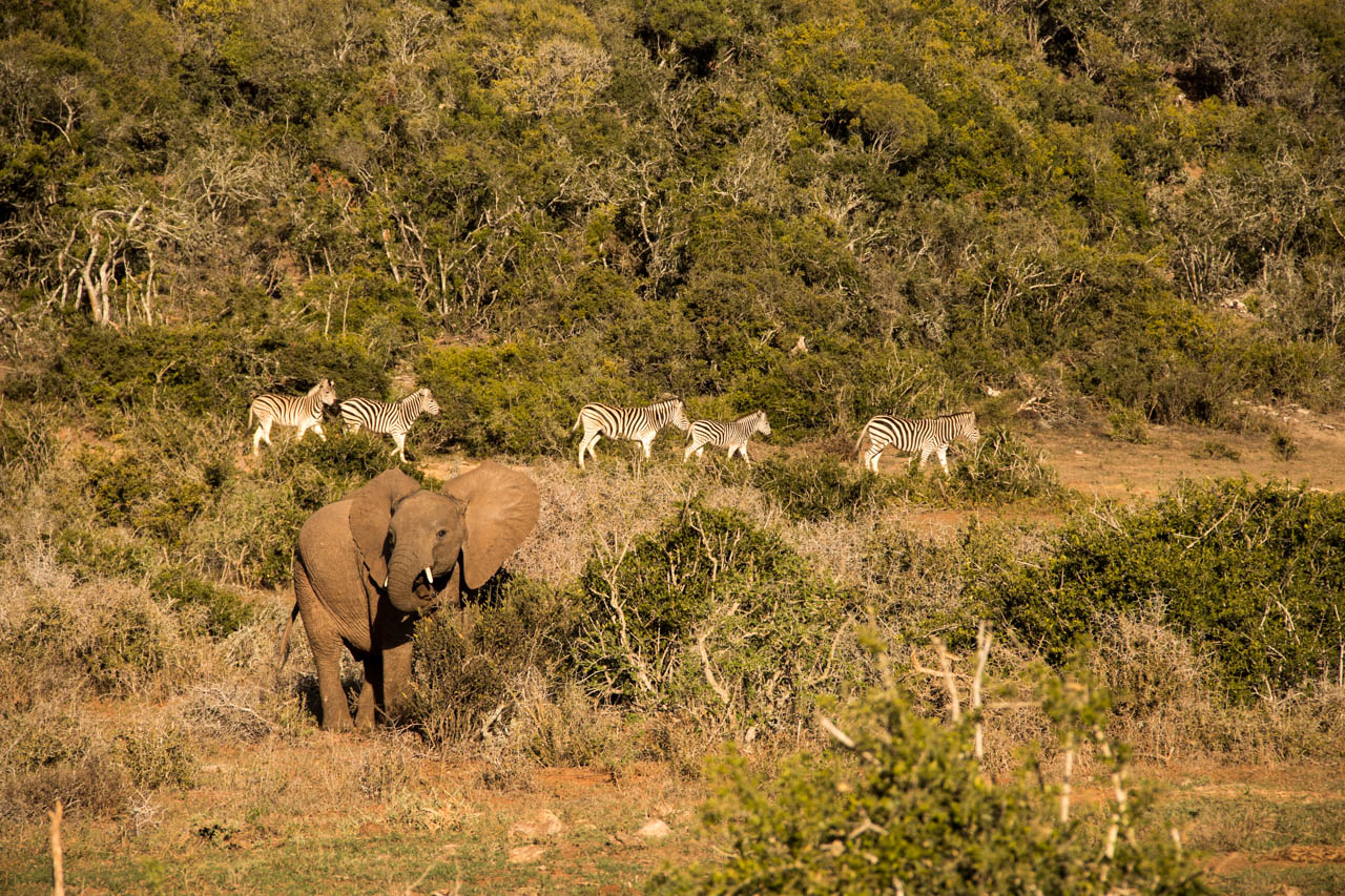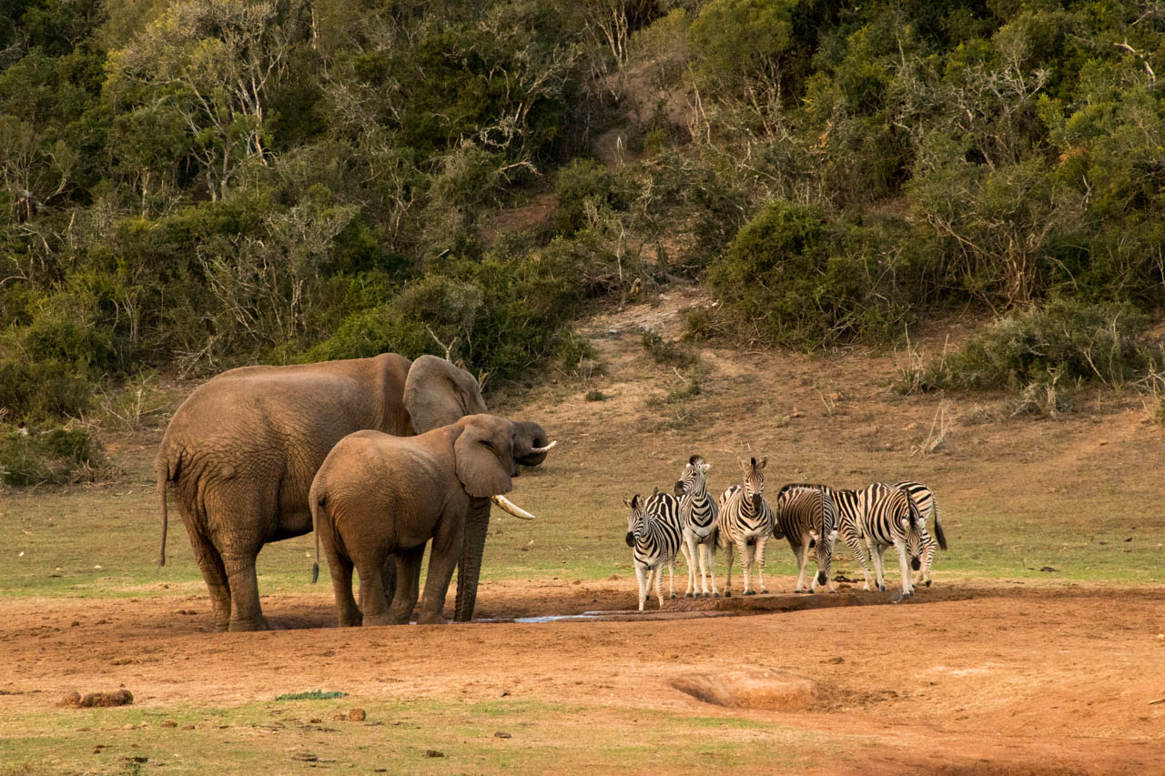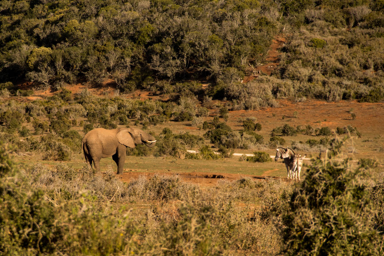 Von Mossel Bay aus ging es weiter entlang der Garden Route mit immer wieder spektakulären Aussichten über Seen und Wälder im Norden und rollende Wellen im Süden bis zu unserem ersten richtigen Ziel, dem Addo Elephant National Park. Hier wurde es gleich etwas spannender, da wir bei Einfahrt in den Nationalpark mitgeteilt bekommen haben, dass wir ohne Stopps und Umwege auf direktem Weg ins Camp fahren müssen, da wir zeitlich knapp dran sind und das Tor am Camp um Punkt 18 Uhr schließt! Natürlich haben sich aber gleich auch ein paar Tiere präsentiert und wir konnten nicht ohne anzuhalten und Fotos zu machen einfach weiterfahren… um 17:57 Uhr sind wir durchs Camptor gerollt (was auch gut war, da wir auf Nachfrage erfahren haben, dass bei Ankunft nach 18 Uhr eine Strafe von 1.000 ZAR persönlich bei der Polizei vor Ort zu zahlen sei). Den nächsten Tag haben wir mit einer Safaritour noch vor Sonnenaufgang gestartet und sind dann auf eigene Faust losgefahren, um unser Tagesziel zu verwirklichen: Löwen sehen!